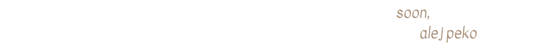 good enough. is a newsletter that is dedicated to the exploration of practice, discovery, attempt, observation, and connection. Subscribing to good enough. means that you are also interested in what it means to be human; to be an observer, a maker, a doer, a joiner, an explorer. Each Sunday morning a small bite of alej’s observed world will land in your inbox. Together, with your observation and interaction, we’ll create greater meaning of the world. Our world.