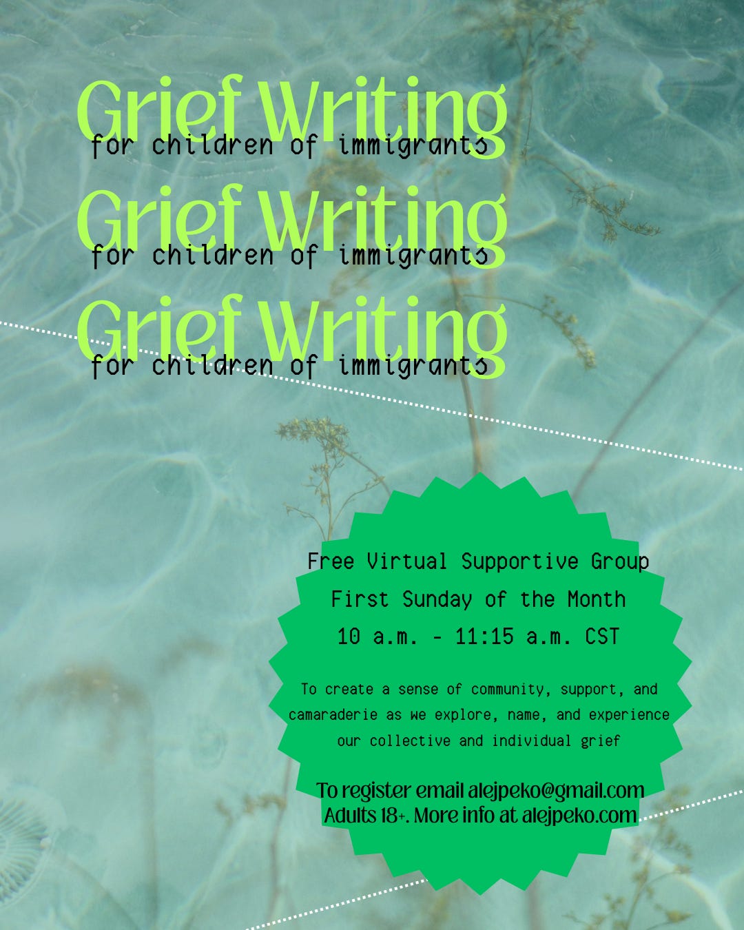 Another reminder that I’ll be hosting Grief Writing for Children of Immigrants on the first Sunday of every month forever as long as people are interested. It will be virtual from 10 a.m. - 11:15 a.m. CST. To sign up you can visit my new website. Please spread the word!
